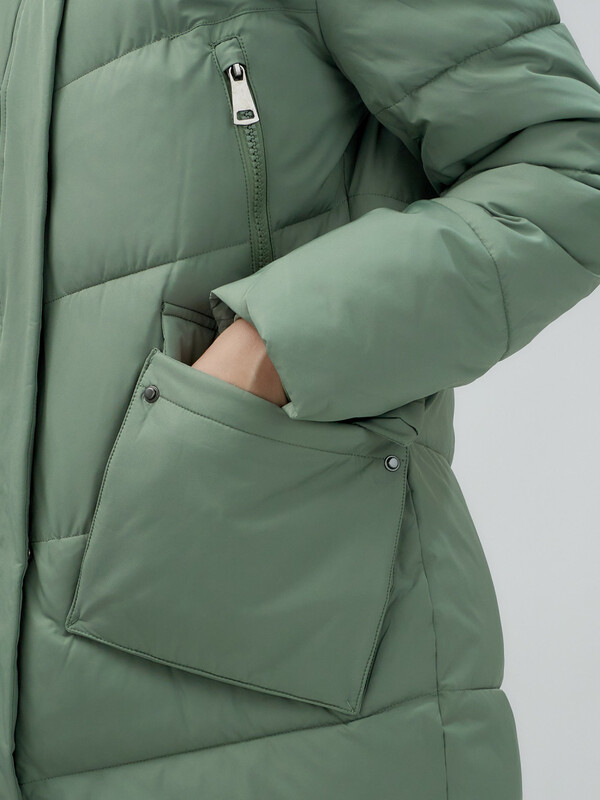 — Стеганая фактура: Придает пальто стильный и современный вид, делая его универсальным для любого гардероба.