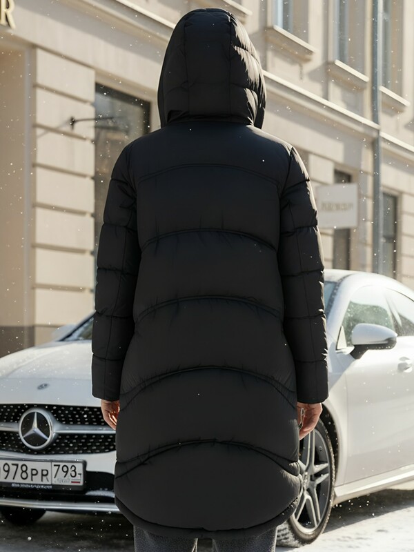 С стильным стоячим воротником и удлиненной длиной до колен, это пальто сочетает в себе элегантный и офисный стиль, а также подходит для повседневной носки. Не съемный капюшон и фиксирующие элементы по низу обеспечивают дополнительную защиту от непогоды.