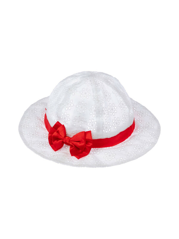 Панама детская текстильная для девочек (46, белый,красный)(PlayToday)