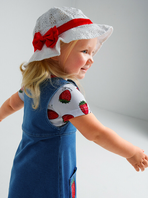 Панама детская текстильная для девочек (48, белый,красный)(PlayToday)