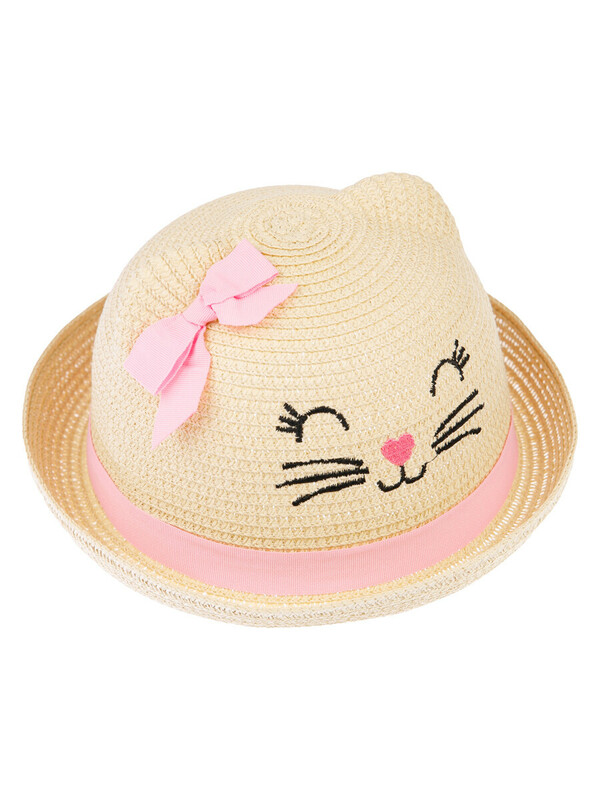 Шляпа соломенная. Дизайн мордочка кошки. 100% натуральный материал бумажная соломка. Декор-бантик сбоку из отделочной ленты.