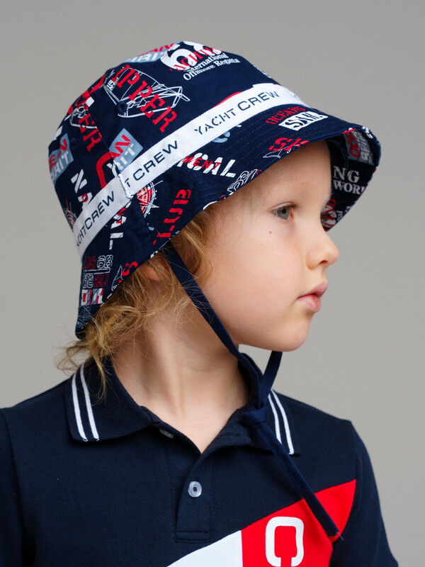 Панама из 100% хлопка. Классическая форма. Завязки комфортно фиксируют панаму на голове.