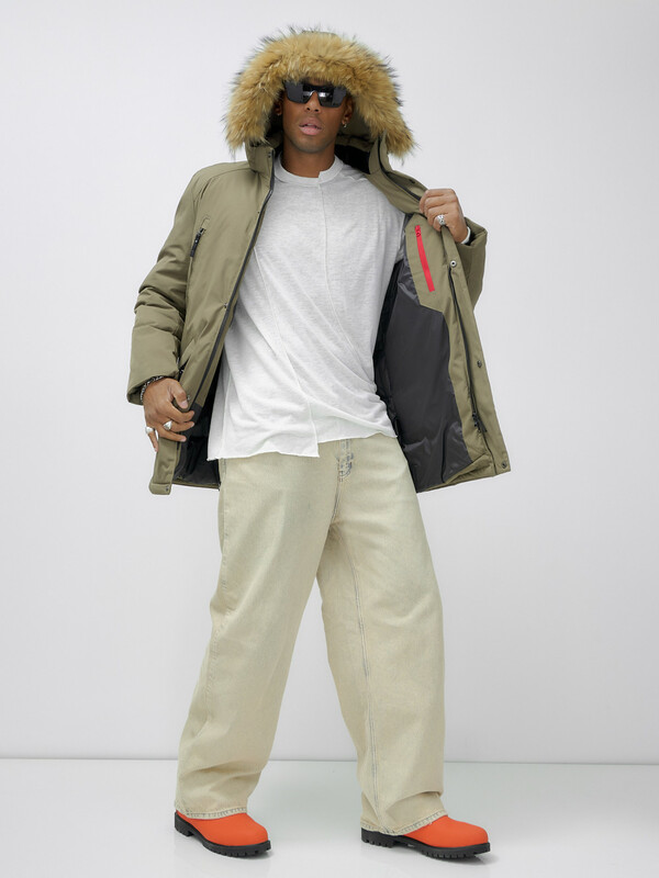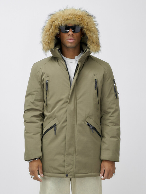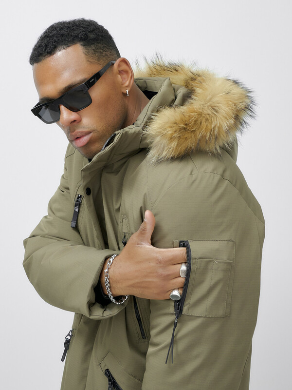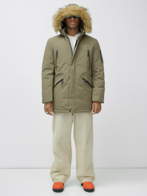Главная страница - Каталог - Мужская одежда - Мужская верхняя одежда - Мужская верхняя одежда осень-зима - Парка мужская зимняя удлиненная с мехом бежевого цвета 606_1B