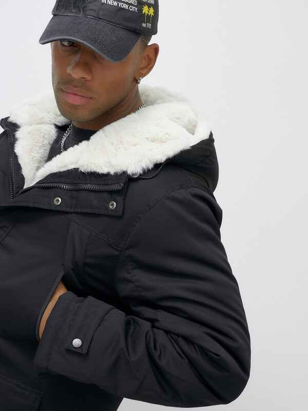 - Не съемный капюшон с меховой подкладкой: Защитит от ветра и холода, добавляя нотку элегантности.