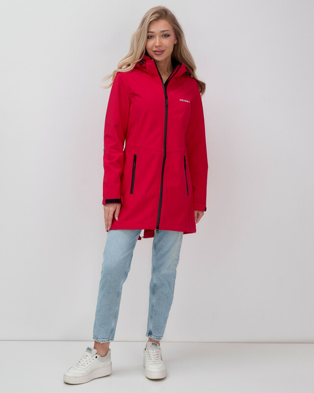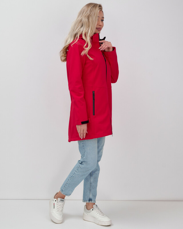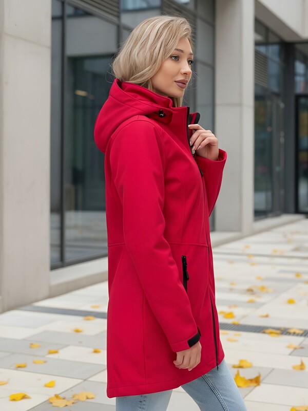 Парка спортивная женская с капюшоном softshell красного цвета 9568Kr