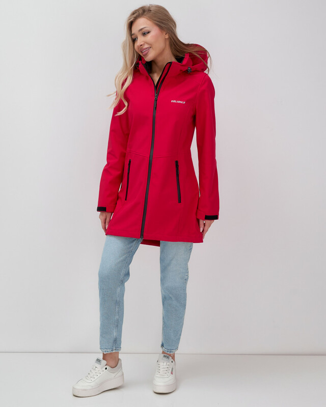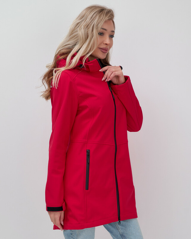 Главная страница - Каталог - Женская одежда оптом - Женская верхняя одежда - Женская верхняя одежда весна-осень - Парка спортивная женская с капюшоном softshell красного цвета 9568Kr