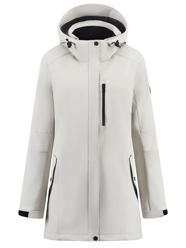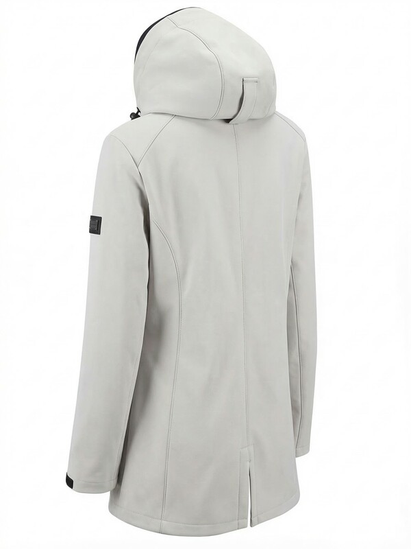 Парка женская софтшелл виндстоппер удлинённая с капюшоном белого цвета 9618_1Bl