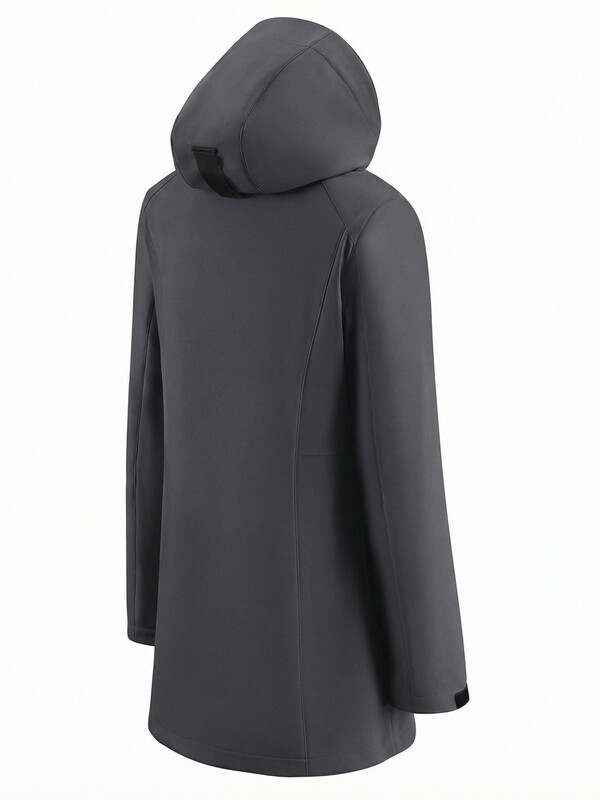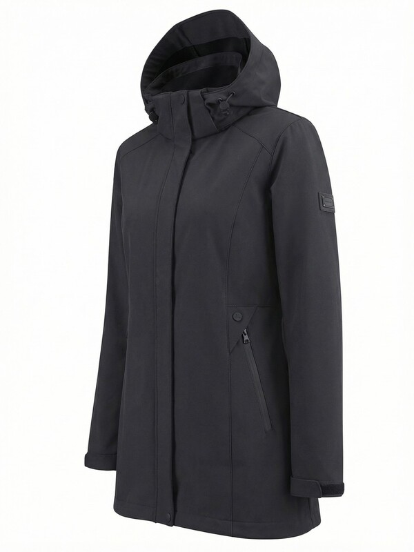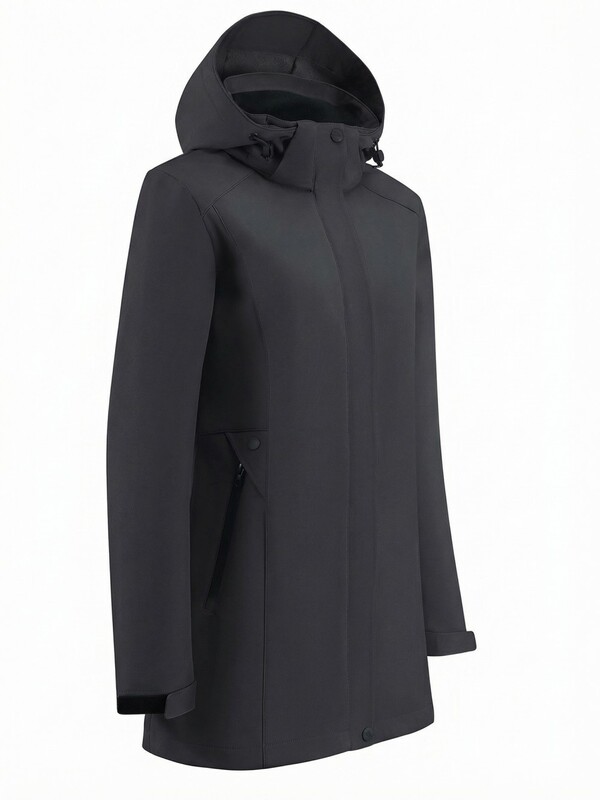 Главная страница - Каталог - Женская одежда оптом - Женская верхняя одежда - Женская верхняя одежда весна-осень - Парка женская софтшелл виндстоппер удлинённая с капюшоном черного цвета 9614_1Ch