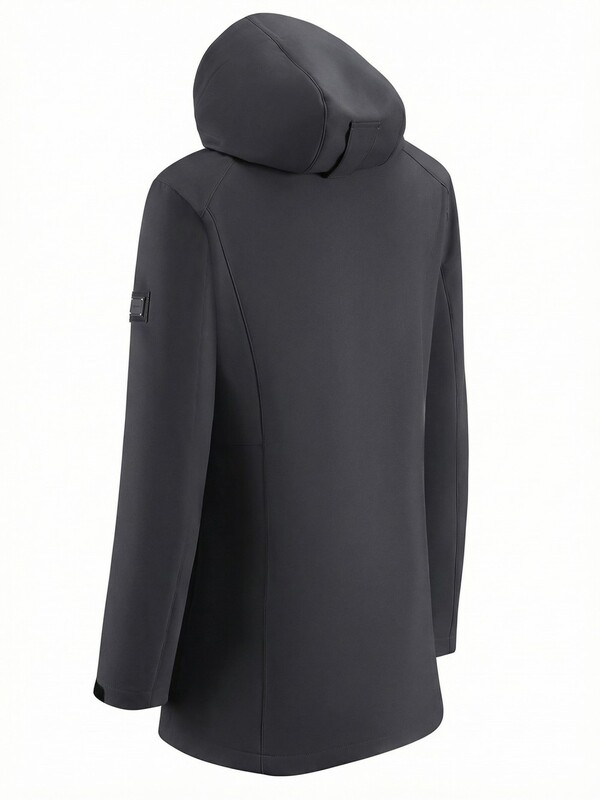 Парка женская софтшелл виндстоппер удлинённая с капюшоном черного цвета 9614_1Ch