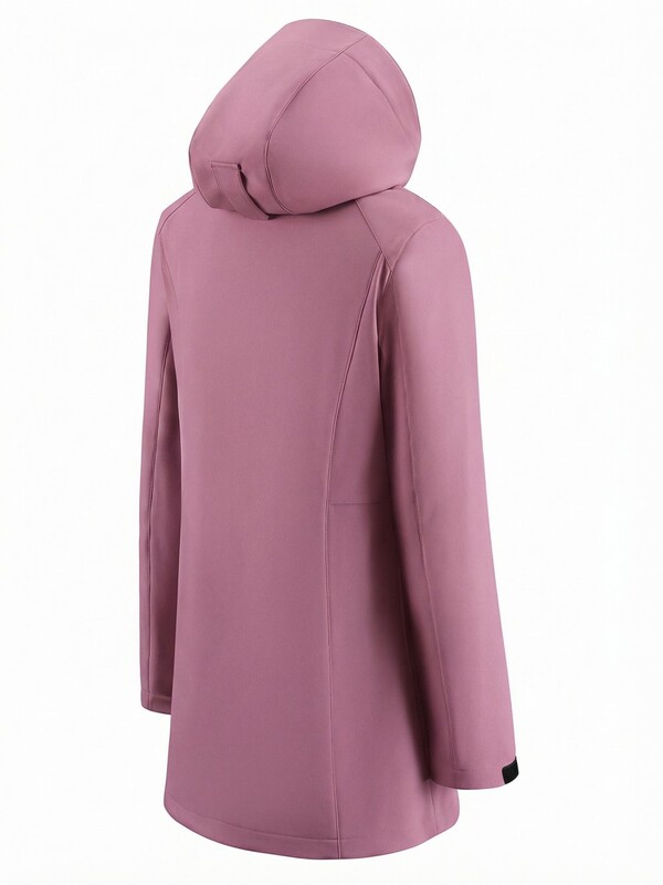 Главная страница - Каталог - Женская одежда оптом - Женская верхняя одежда - Женская верхняя одежда весна-осень - Парка женская софтшелл виндстоппер удлинённая с капюшоном малинового цвета 9614_1M