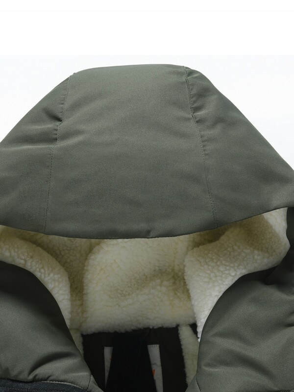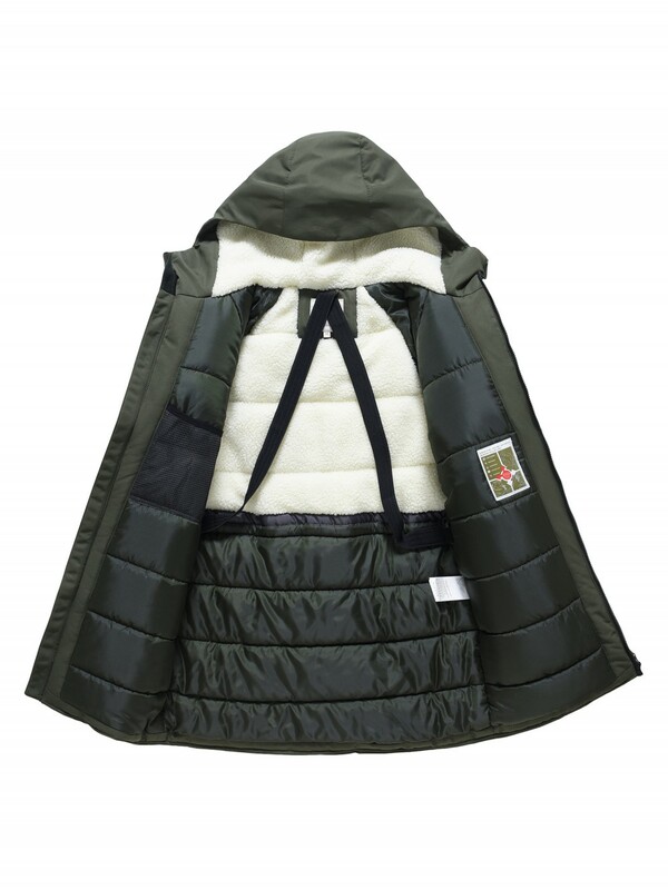 Внутренняя подкладка из овчины, полиэстера и флиса делает парку тёплой и уютной, несъёмный капюшон надёжно защищает от снега и ветра, а воротник-стойка прикрывает шею. Регулируемые фиксаторы на рукавах и капюшоне помогают удерживать тепло, трикотажные манжеты дополнительно блокируют холод. Вместительные карманы с начёсом на молнии и магнитах позволяют согревать руки и носить с собой необходимые вещи. Модель выполнена в универсальных цветах — сером, чёрном, хаки и тёмно-синем, легко сочетаясь с любым стилем одежды.