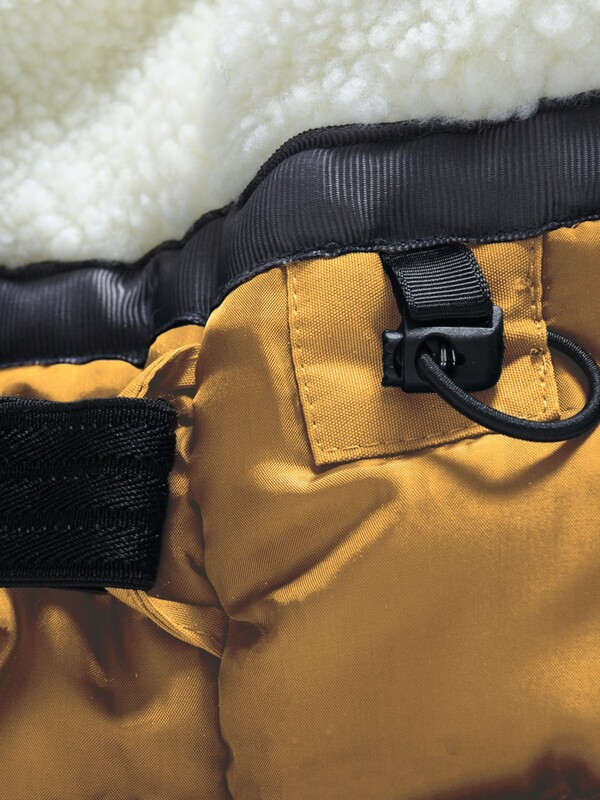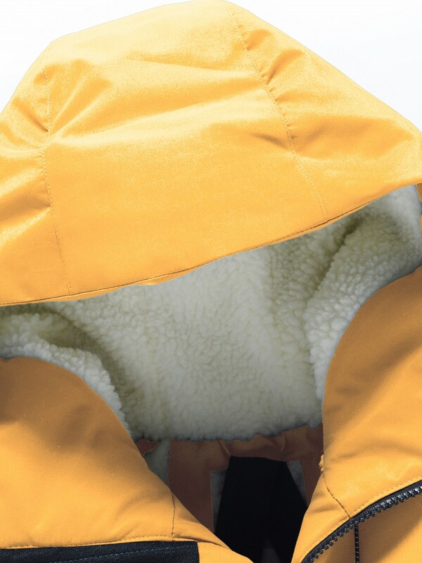 фиксаторы по низу, на капюшоне и по центру (в области талии) позволяют подстроить силуэт и защитить от продувания;