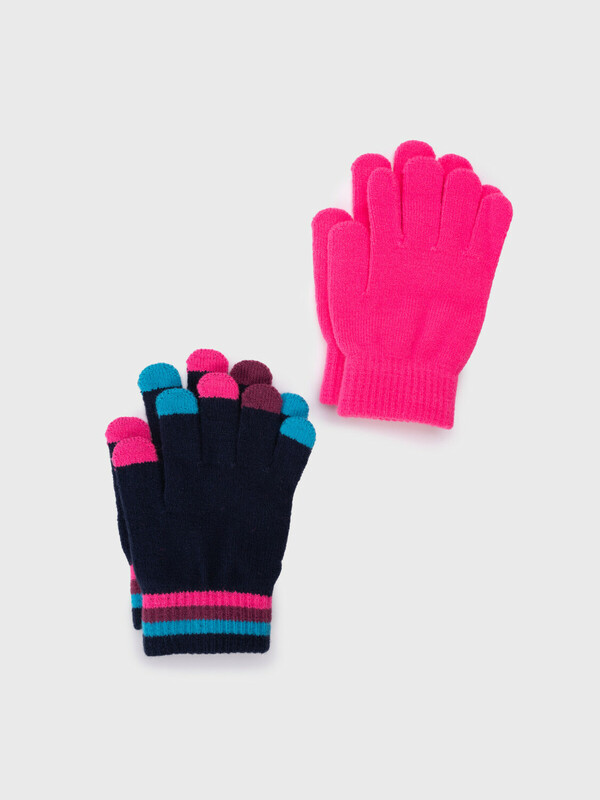 Набор детских перчаток для девочки. Перчатки из вязаного трикотажа. 2 пары в комплекте. Пряжа из акрила: легкая, теплая, гипоаллергенная. Вязаная резинкой манжета.