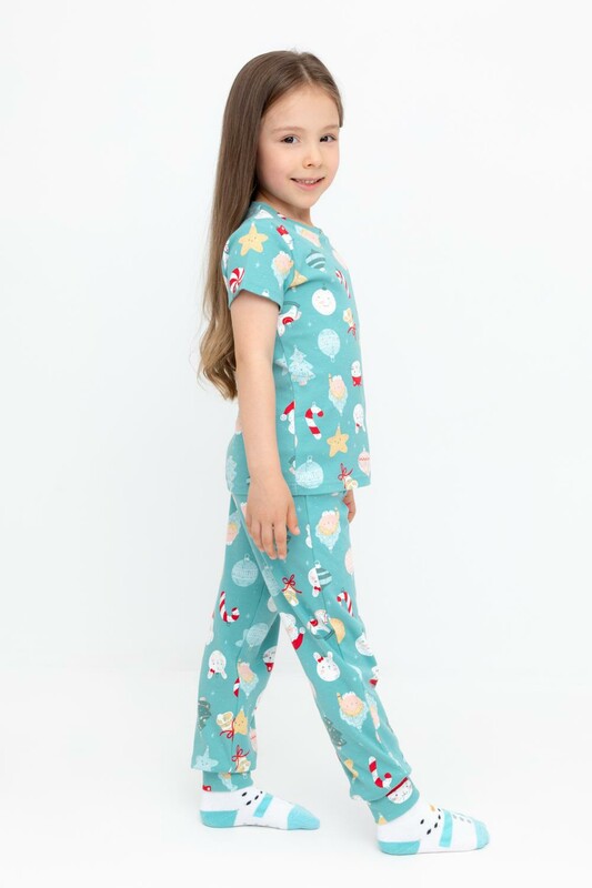 Трикотажная пижама из натурального хлопка. Футболка с короткими рукавами. У брюк в комплекте мягкий, эластичный пояс на резинке. Оригинальные набивка выполнена из стойких, гипоаллергенных текстильных красителей. Комплект сохраняет цвет и форму после многократных стирок. Все трикотажные полотна производятся в соответсвии с нормами Швейцарского сертификата ЭкоТекс.