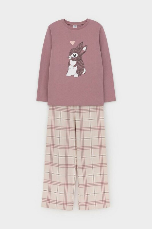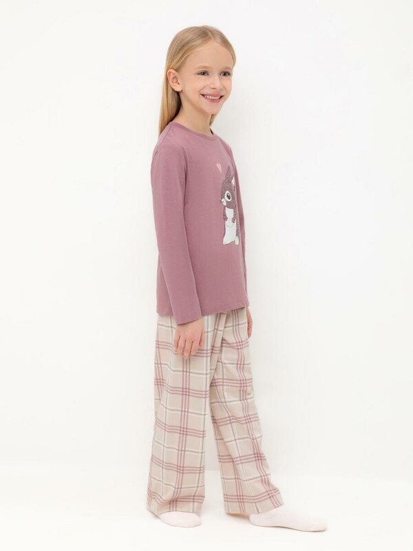 Трикотажная пижама из натурального хлопка. Джемпер с длинными втачными рукавами и прямые брюки с эластичной резинкой в поясе. Оригинальные набивка и принт выполнены из стойких гипоаллергенных текстильных гипоаллергенных красителей. Изделие сохраняет цвет и форму после многократных стирок. Все трикотажные полотна производятся в соответсвии с нормами швейцарского сертификата ЭкоТекс.