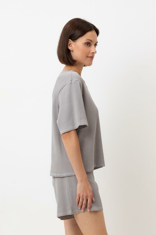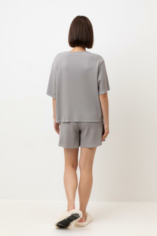 Комплект из объемного трикотажа с добавлением эластичных волокон. Свободный силуэт и мягкий пояс обеспечат комфорт во время сна и отдыха.