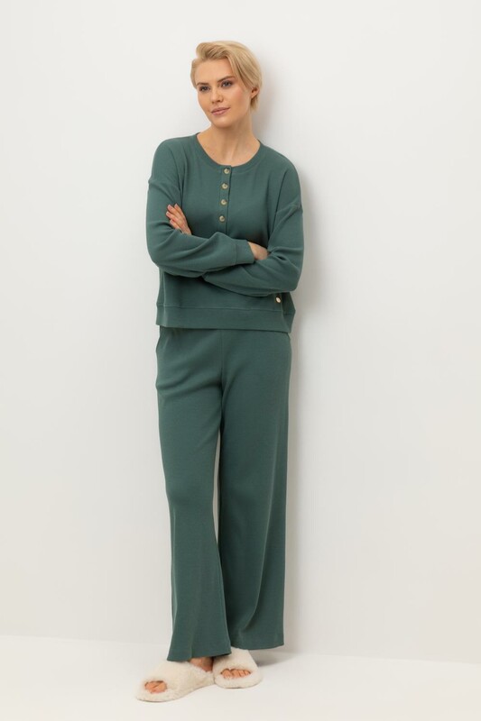 Комплект из объемного трикотажа с добавлением эластичных волокон. Свободный крой обеспечивает легкость и свободу движений.