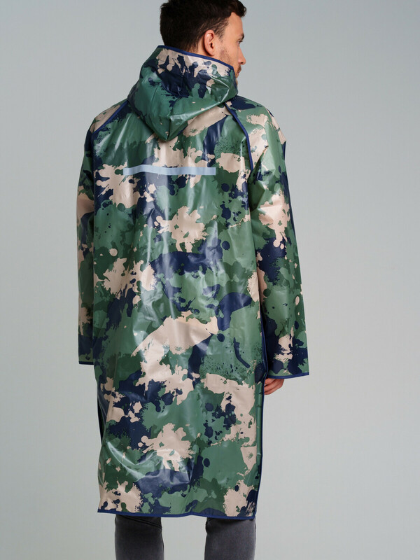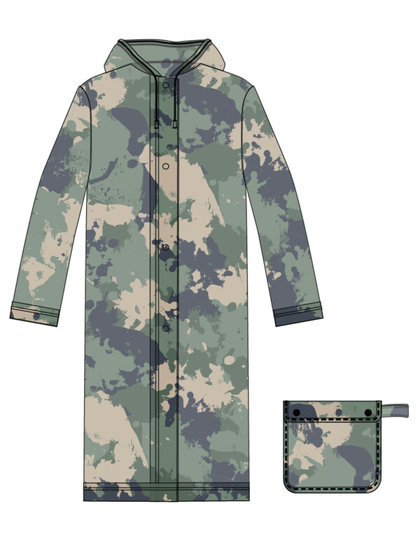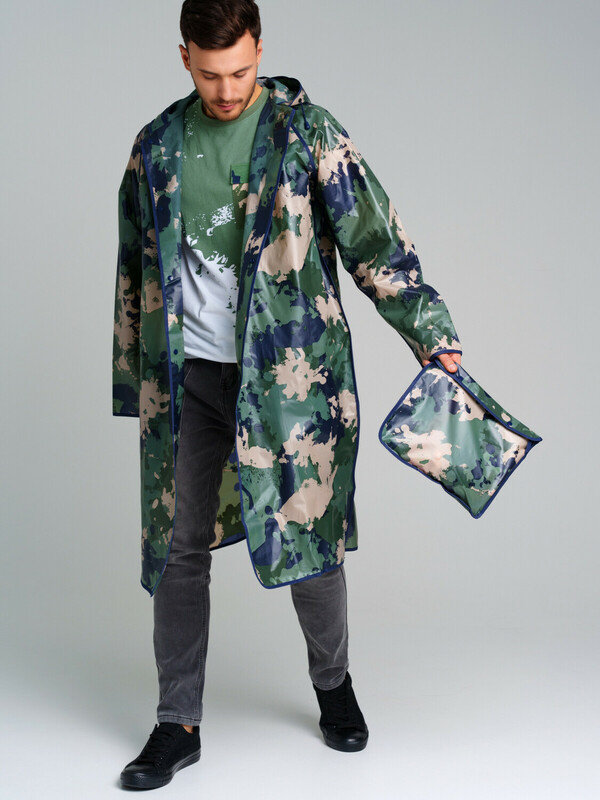 Плащ-дождевик с мешочком. Оптимальная длина. Застежка на кнопки. Добавлены петельки под капюшоном с внешней стороны, чтобы остальные вещи на вешалке не намокали.