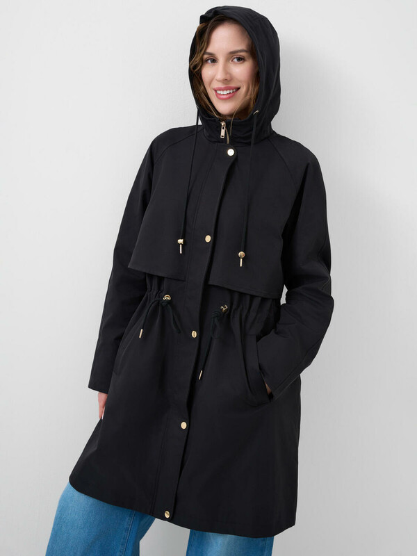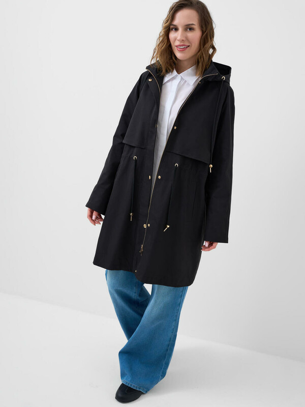 Женский плащ средней длины, выполненный в современном стиле с удобным капюшоном и приталенным силуэтом благодаря утяжке на талии. Температурный режим от +20С до +10С. Ткань с ветрозащитным и водоотталкивающим покрытием. Внутри гладкая подкладка. Капюшон с утяжкой шнуром. Два вместительных кармана. Утяжка на талии и удобная застежка — молния с ветрозащитной защитной планкой на кнопках. Внутри рукавов — мягкие эластичные манжеты для дополнительного комфорта и защиты от ветра.