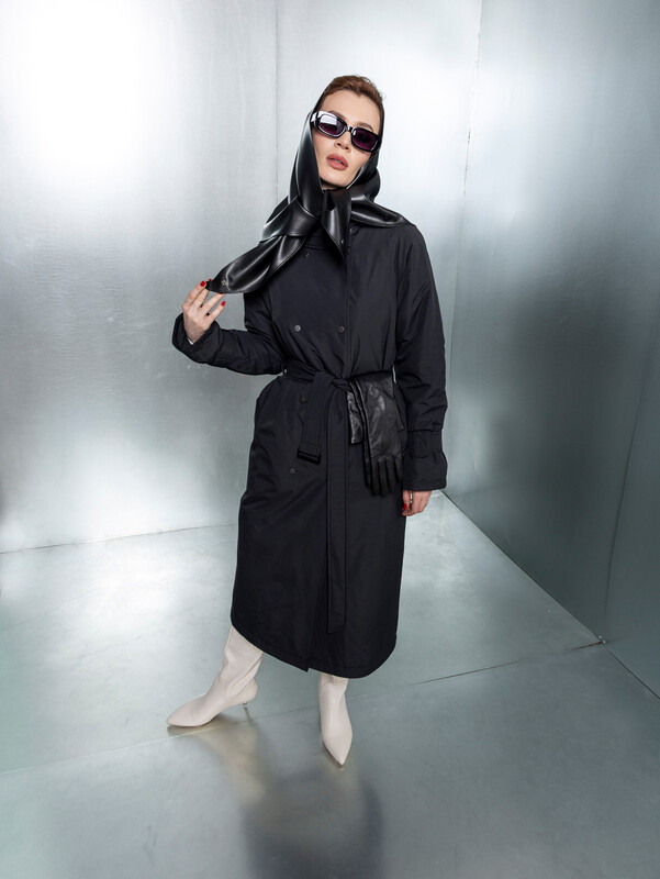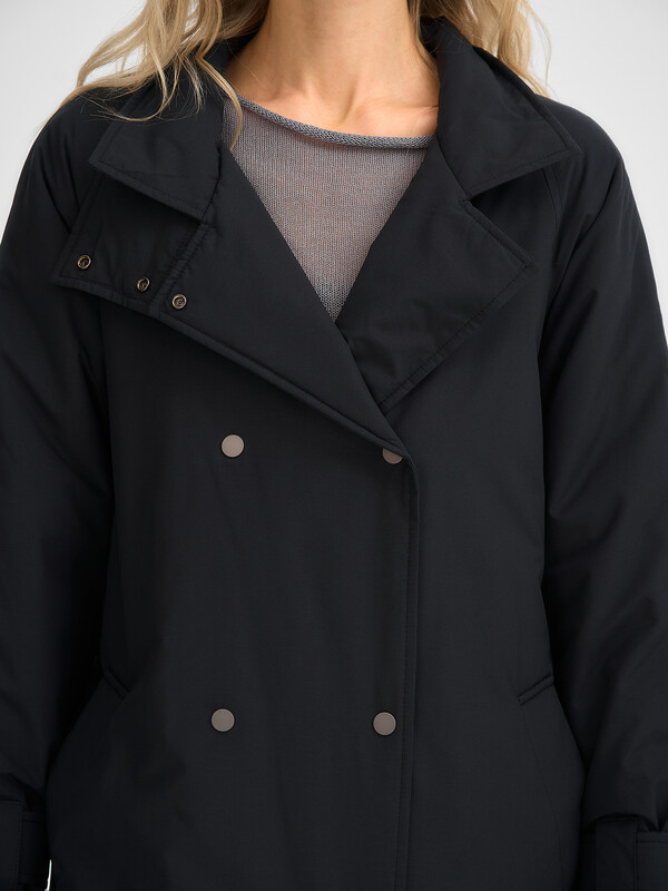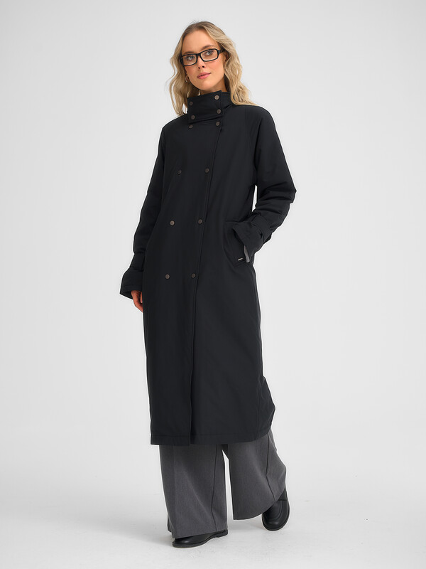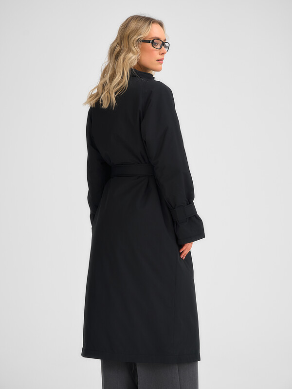 Утепленный классический плащ на кнопках. Изделие без капюшона. В комплекте есть пояс из основной ткани.