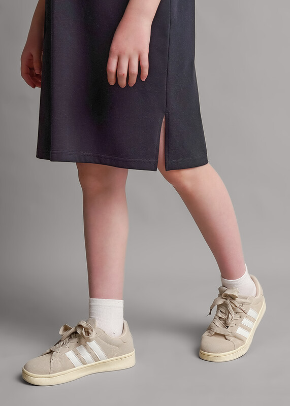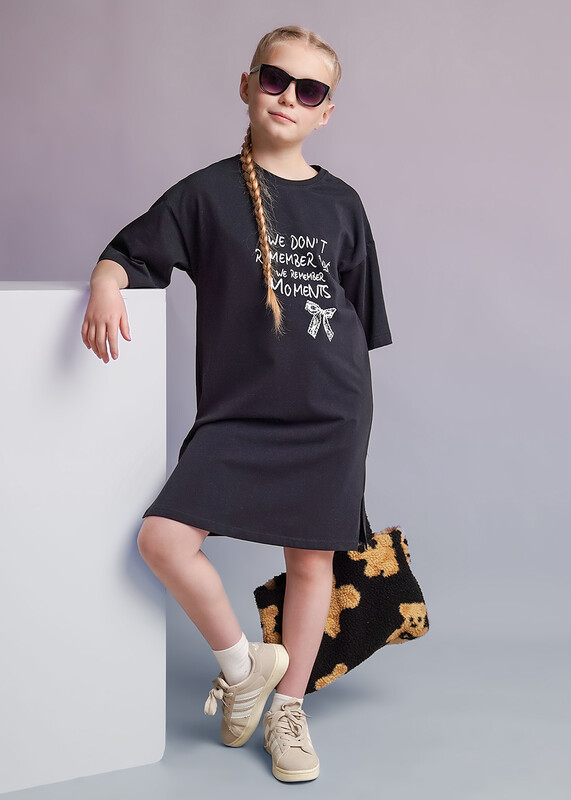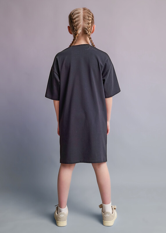 Платье-футболка из трикотажного полотна с эластаном обеспечит комфорт в жаркий летний день. Круглый вырез горловины оформлен эластичной окантовкой, разрезы по бокам. Спреди модель дополнена стильным принтом.