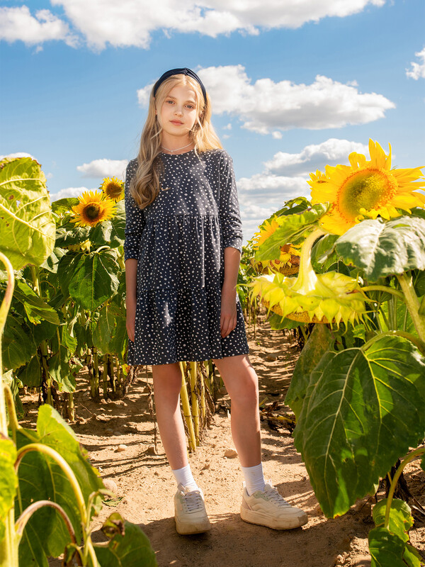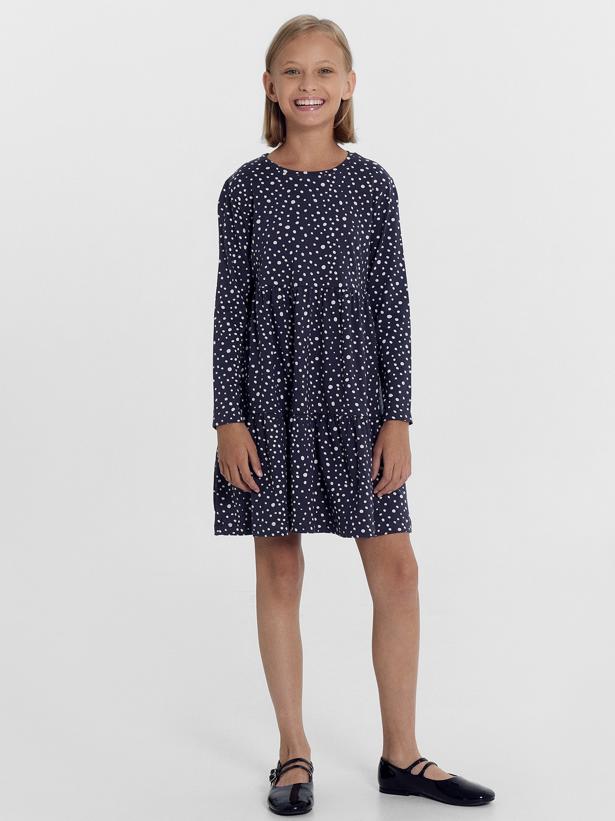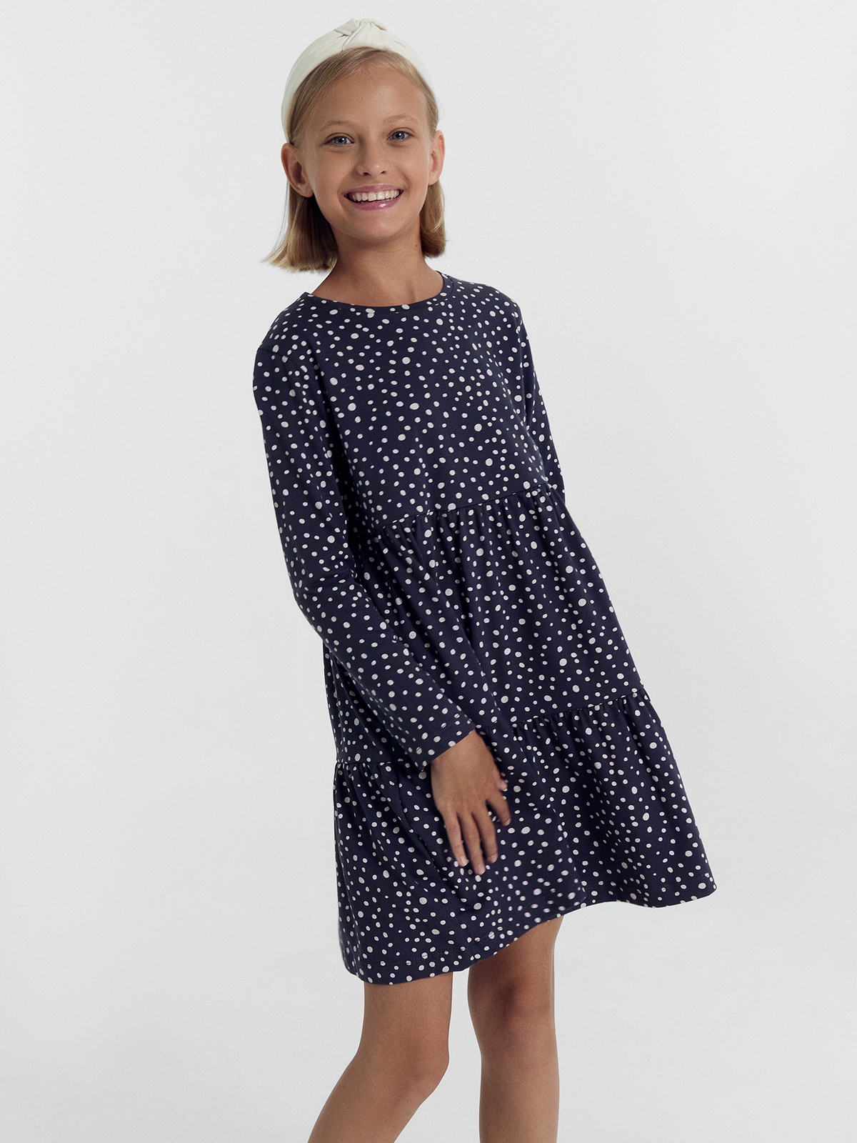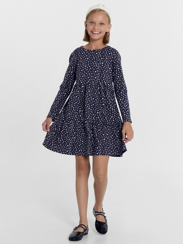 Стильное и уютное детское платье полуприлегающего силуэта для девочек. Рукава втачные длинные. Круглый вырез горловины. Обтачка горловины из основного полотна. Платье с двумя отрезными воланами по переду и спинке. Комфортная модель для повседневной носки. Комфортная и неверотяно удобная. Представлена в нескольких расцветках. Размерный ряд широкий. Рекомендуем!