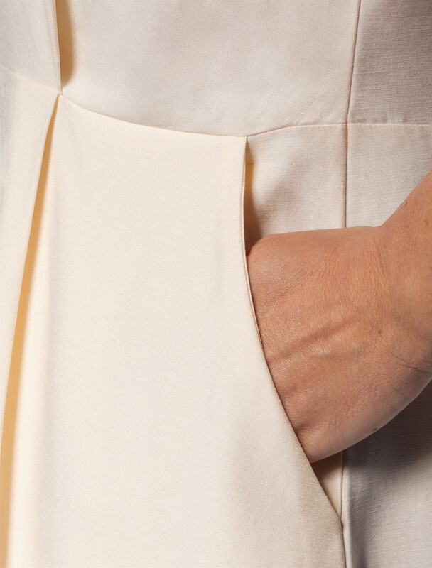 Платье выполнено из плотного лиоцелла. Модель дополнена карманами. Сзади застежка на потайную молнию. Ткань хорошо держит форму и почти не мнется. Слегка завышенная талия и пышная юбка подчеркивают романтический образ. Подходит для любой фигуры.