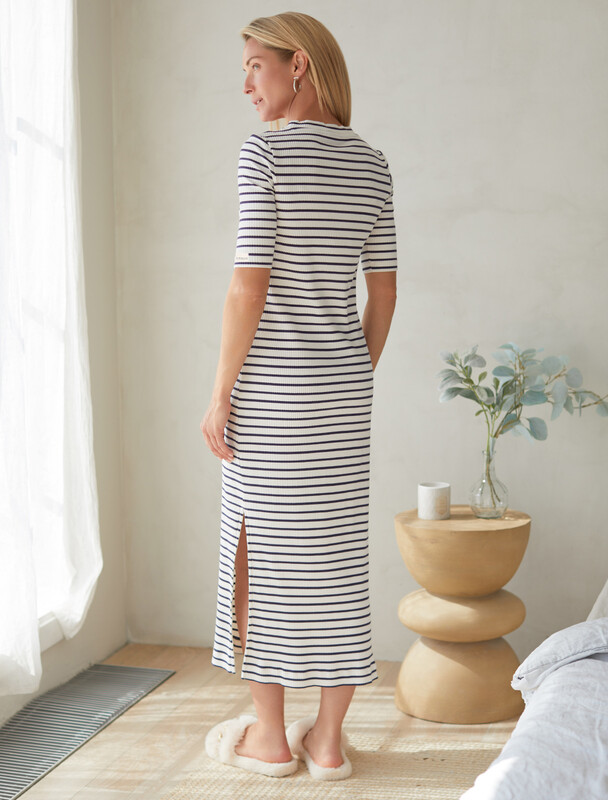Платье длины миди из мягкого трикотажа выполнено широкий рубчик. Благодаря добавлению эластана материал обладает высокой формоустойчивостью, что обеспечивает комфорт при носке и сохранение первоначального вида после длительного использования. Полуприлегающая посадка подчеркивает фигуру, а длина рукава до локтя делает модель универсальной для любого времени года. Разрезы по бокам добавляют изящности и свободы движений, делая образ женственным и утонченным. Платье станет отличным выбором для создания разнообразных образов — от классического до повседневного стиля. Оно легко комбинируется с аксессуарами и обувью, позволяя вам экспериментировать с модными решениями.