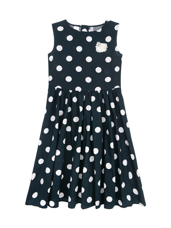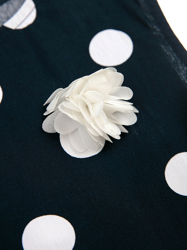 Платье с открытой линией плеч из сатина. Размер изделия на фото - 140, параметры модели (см): рост 143, обхват груди-талии-бедер: 69-58-78. 100% хлопок. Утяжка поясом. Цветок из шифона.
