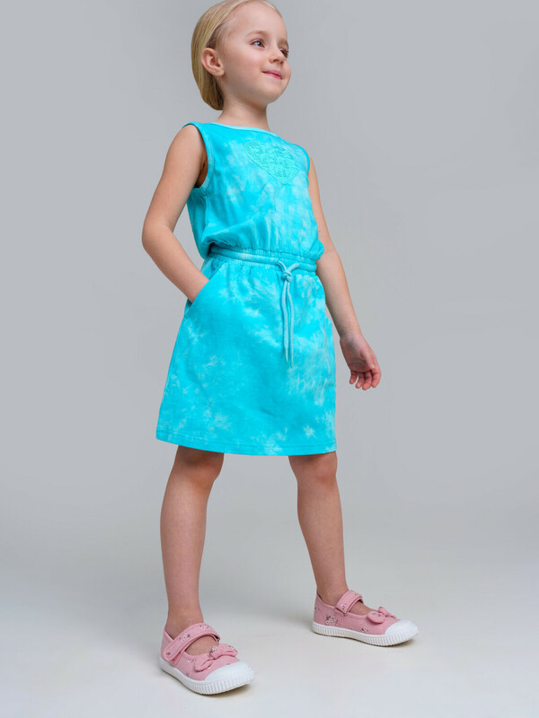 Платье детское для девочки. Платье из качественного и приятного на ощупь трикотажа джерси. Высокое содержание хлопка 95%. Благодаря наличию эластана в составе ткани изделие проще в уходе и держит форму. Пояс на резинке со шнурком. Функциональные боковые карманы. Модель выполнена из качественного и приятного на ощупь трикотажа.