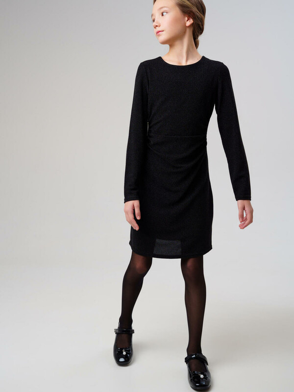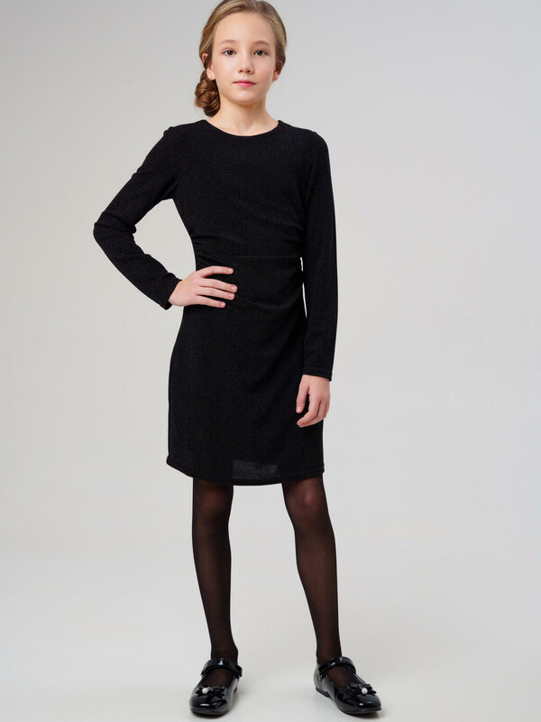 Стильное трикотажное платье для девочки подростка от PlayToday — нарядная модель с люрексом.