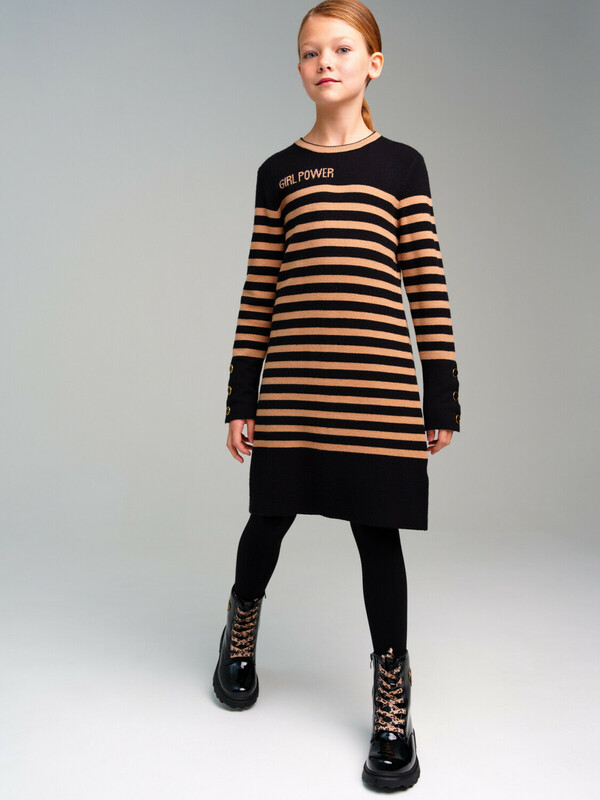 Платье трикотажное для девочек (128, черный,коричневый)(PlayToday)