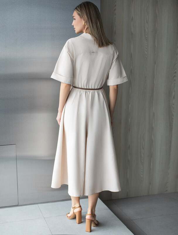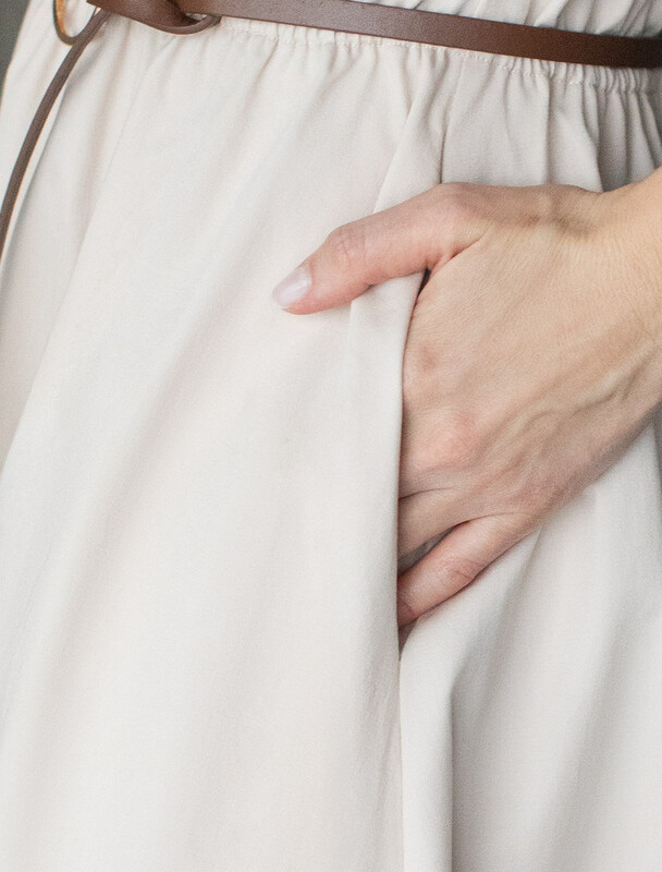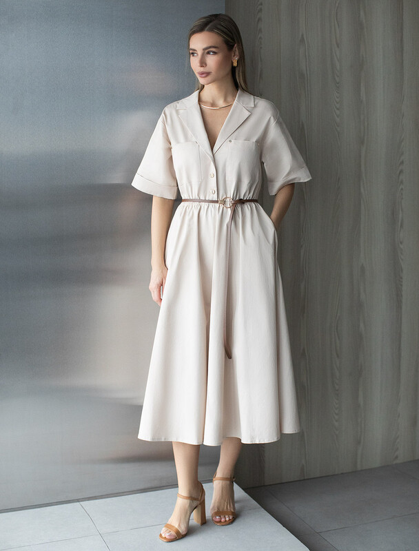 Платье в стиле сафари выполнено из хлопкового твила. Изделие дополнено тонким ремешком из эко-кожи, боковыми и нагрудными карманами, подворотами на рукавах. Застежка на пуговицы спереди. Благодаря наличию эластана в составе изделие сохранит свой безупречный внешний вид в течение долгого времени. Обладает высокой воздухопроницаемостью, в платье будет комфортно даже в жаркое время года.