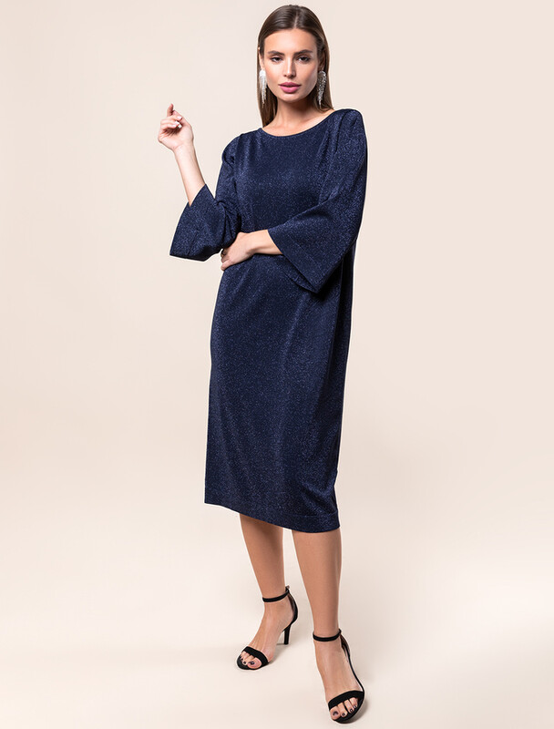 Свободное платье тонкой вязки из вискозы с добавлением мягкого люрекса. V-вырез на спинке изделия изящно притягивает внимание. Дополнительной изюминкой является тонкая цепочка, касающаяся лопаток. Внутренняя сторона изделия без люрекса, абсолютно гладкая и комфортная даже на голое тело. Совет стилиста: платье не требует к себе дополнительных аксессуаров, сочетайте свободную модель с босоножками на тонком ремешке или лодочками.