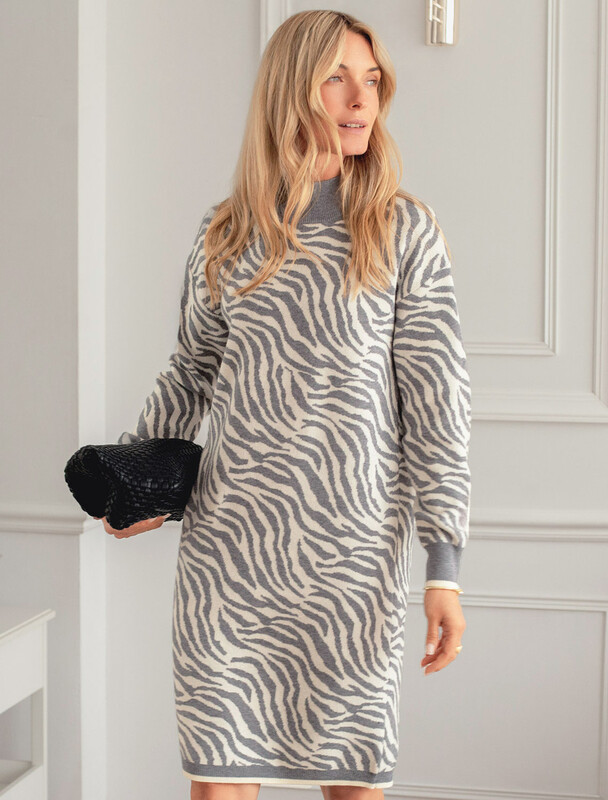 Платье жаккардовой вязки выполнено из мягкой пряжи на основе вискозы с добавлением кашемира. Модель свободного силуэта с высоким воротом и длинным рукавом. Нежная пряжа очень комфортно ощущается на теле, сохраняя оптимальное тепло при этом не перегревая. Совет стилиста: жаккардовое платье отличная инвестиция в базовый гардероб, которая поможет создать дорогие образы. Носите с высокими сапогами удлиняя силуэт или плотными колготками.