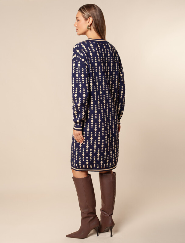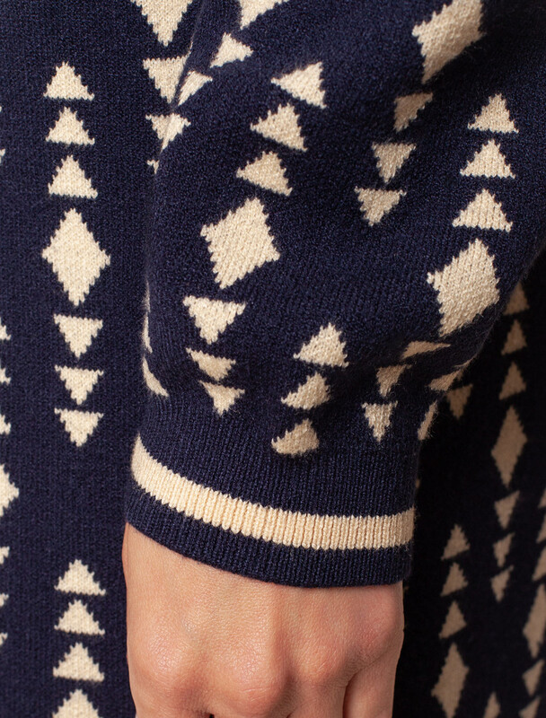 Платье жаккардовой вязки выполнено из мягкой пряжи на основе вискозы с добавлением кашемира. Модель свободного силуэта подходит для любой фигуры. Нежная пряжа очень комфортно ощущается на теле, сохраняя оптимальное тепло при этом не перегревая. Совет стилиста: жаккардовое платье отличная инвестиция в базовый гардероб, которая поможет создать дорогие образы. Носите с высокими сапогами удлиняя силуэт или плотными колготками.
