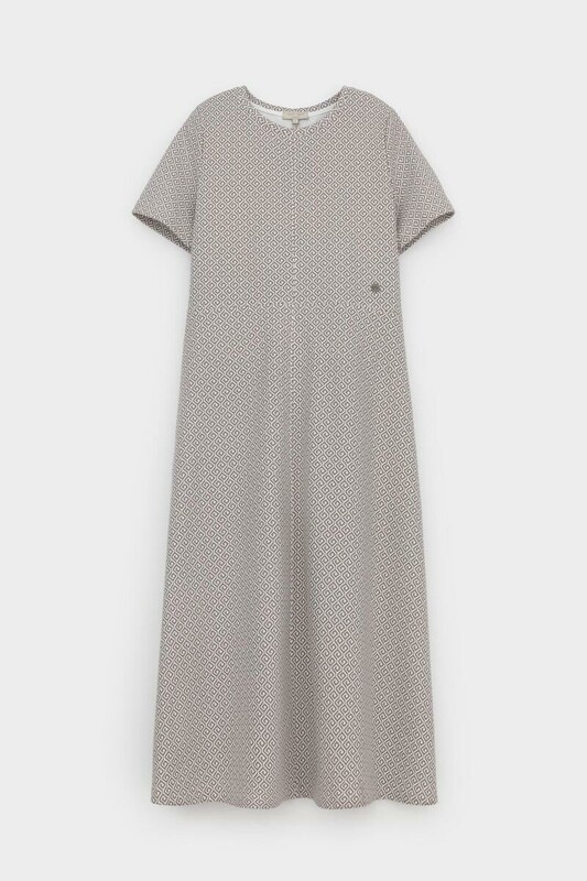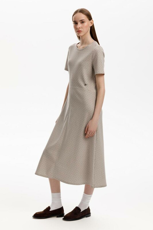 Классический силуэт летнего платья, изготовленного из премиального трикотажа DOUBLE FACE. Мягкий на ощупь трикотаж выполнен из высококачественной гребенной пряжи, а его графичный дизайн добавляет летнего настроения.