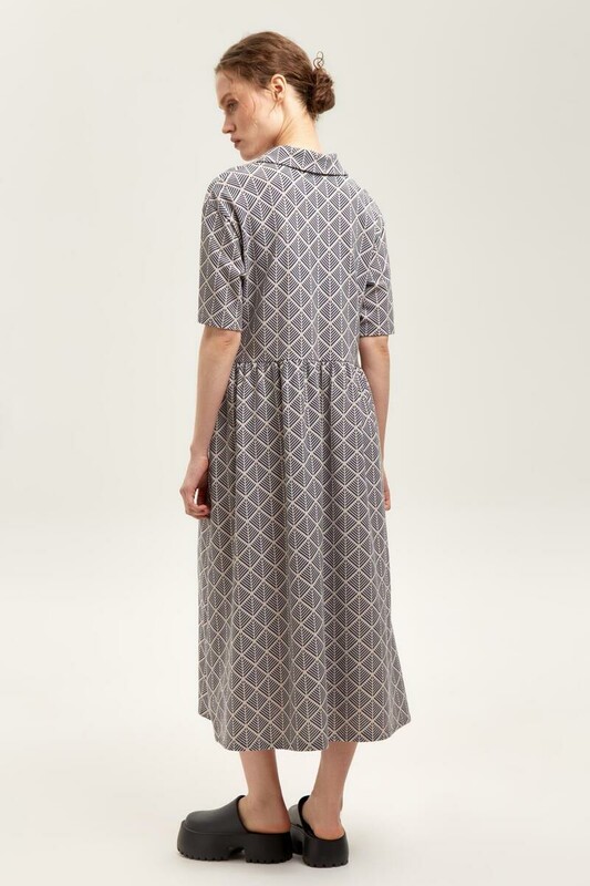 Летнее платье в стиле поло выполненное из премиального трикотажа пике. Свободный силуэт, наличие боковых карманов и геометрический рисунок придают изделию спортивный и одновременно романтический стиль. 100% хлопок в составе обеспечивает комфорт в жаркую погоду.