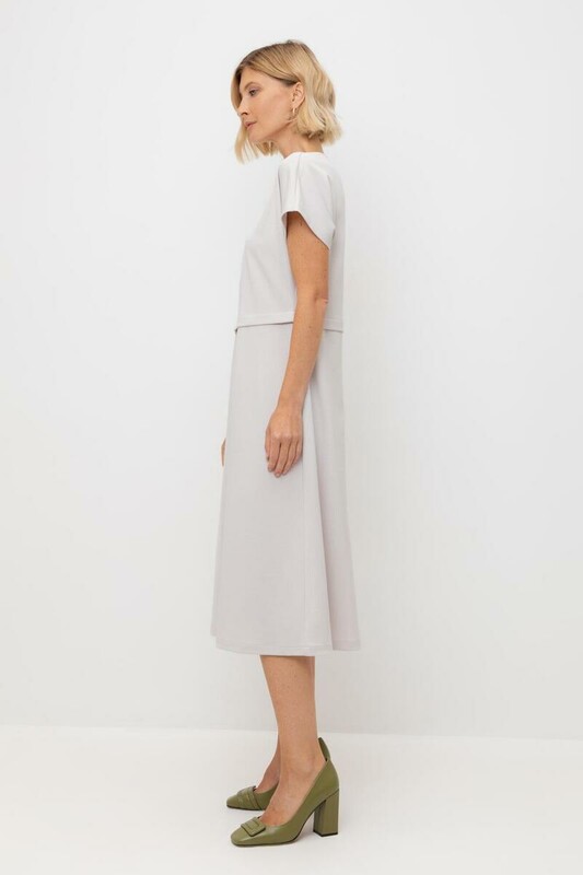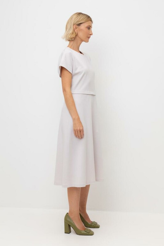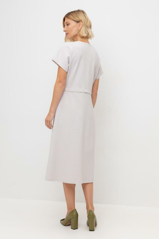 Классический силуэт летнего платья, изготовленного из премиального трикотажа DOUBLE FACE, дарит невероятное ощущение комфорта и легкости. Спущенный цельнокроеный рукав придает изделию романтический образ.