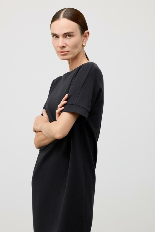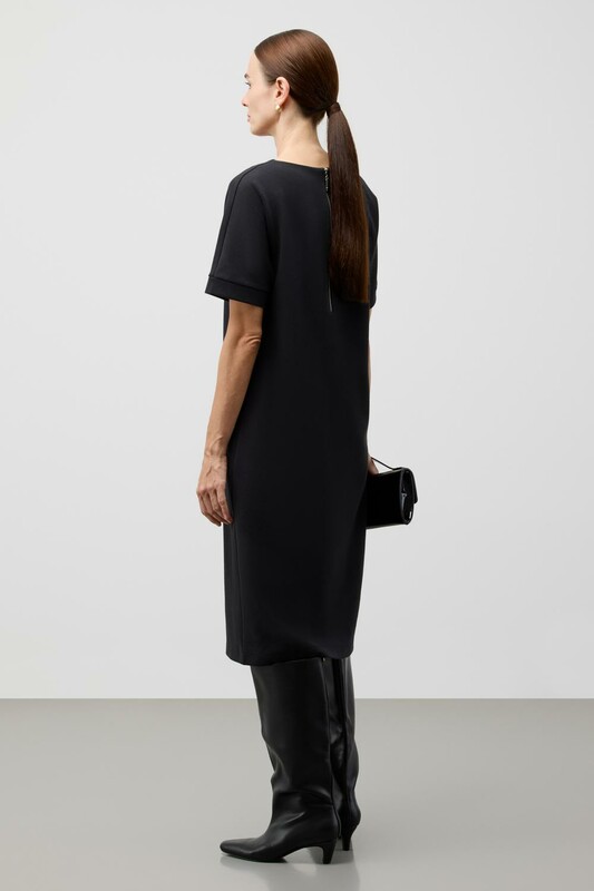 Платье прямого силуэта, выполненное из высококачественного трикотажного полотна DOUBLE FACE с добавлением спандекса. Прямой крой акцентирует внимание на фигуре, формируя элегантный классический стиль.