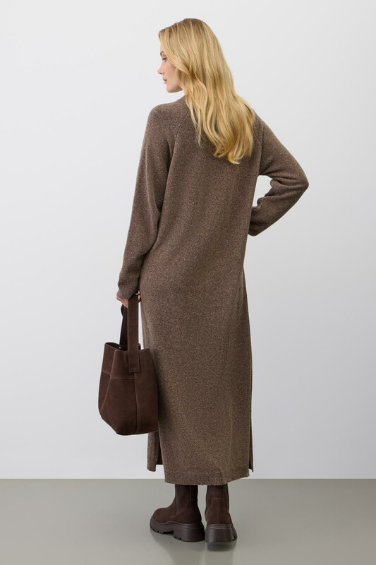 Платье из уникальной коллекции премиальных изделий, выполненных из итальянской шерсти, включает в себя мягчайшую шерсть мериноса и натуральный шелк. Это идеальное сочетание обеспечивает комфортное прилегание к телу, отличную терморегуляцию и воздухопроницаемость. Гладкая текстура с изысканными вкраплениями выглядит особенно стильно и современно.