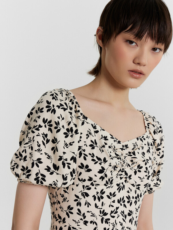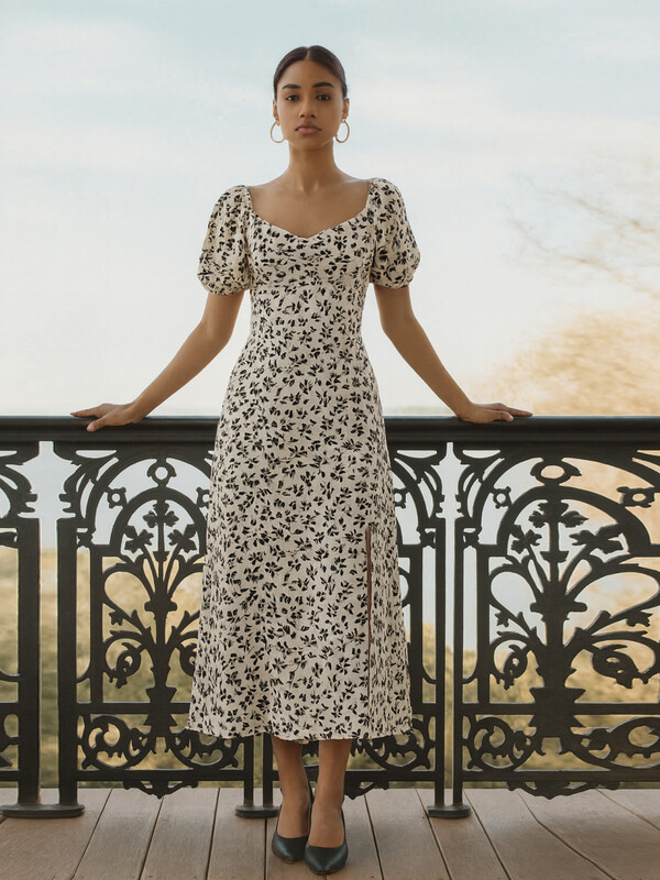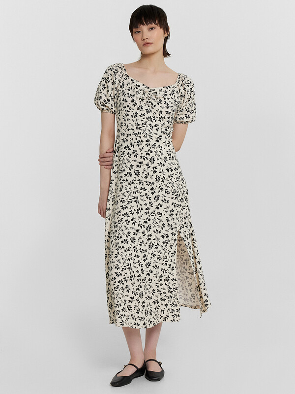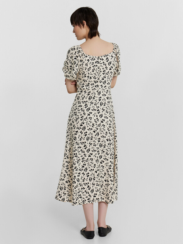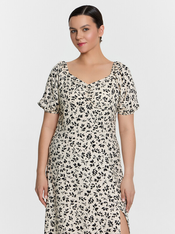 Очаровательное платье макси из нежной и легкой вискозы. Приталенный силуэт акцентирует внимание на талии. Верхняя часть платья привлекает вырезом формы "каре" и необычным лифом со сборками. Рукава короткие и широкие, на резинке. По спинке платье застегивается на потайную молнию. К низу платье расширяется и завершается стильный разрезом. Рекомендуем для ярких летних образов!