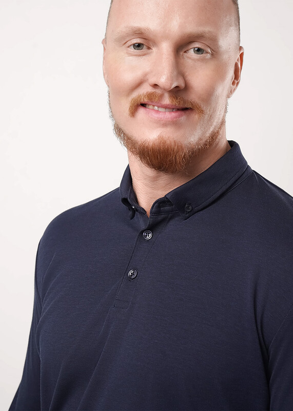 Рубашка-поло с длинным рукавом. Изделие выполнено из трикотажного полотна с кроеным отложным воротником. Модель дополнена имиджевой фурнитурой. Такая рубашка-поло отлично сочетается с брюками или джинсами.
