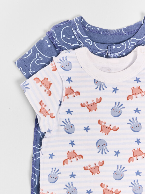 Мультипак состоит из двух нательных комбинезонов, выполнены в трех полотнах для роста 56.