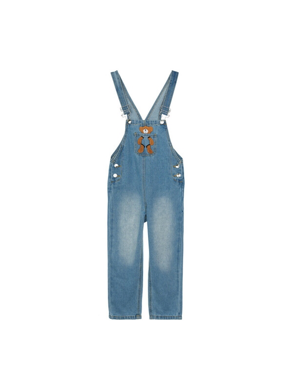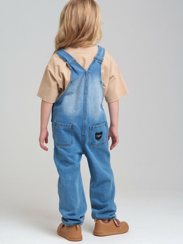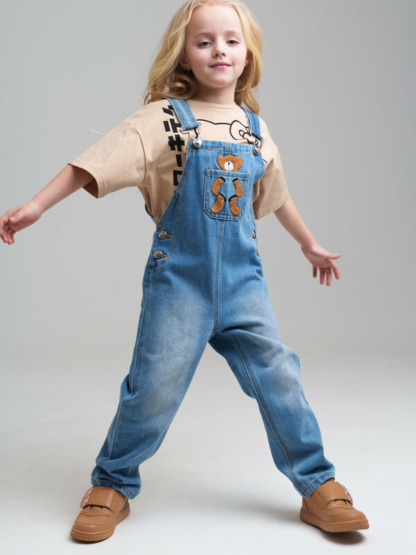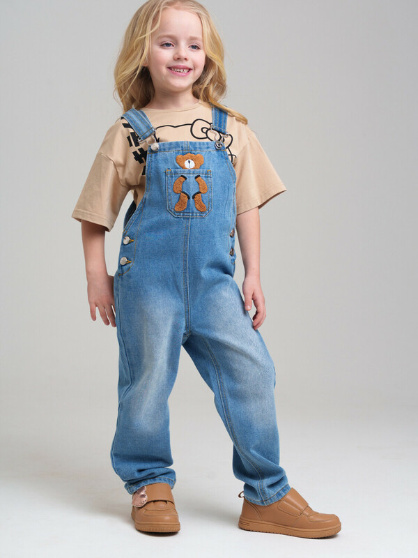 Детский джинсовый комбинезон для девочки. Джинсовый комбинезон-ромпер из эластичного денима. Посадка comfort fit – свободный крой. Регулируемые по длине лямки. Застежка на кнопки по бокам модели. Функциональные карманы. Декор - мишка. Модель выполнена из качественного и плотного текстиля.