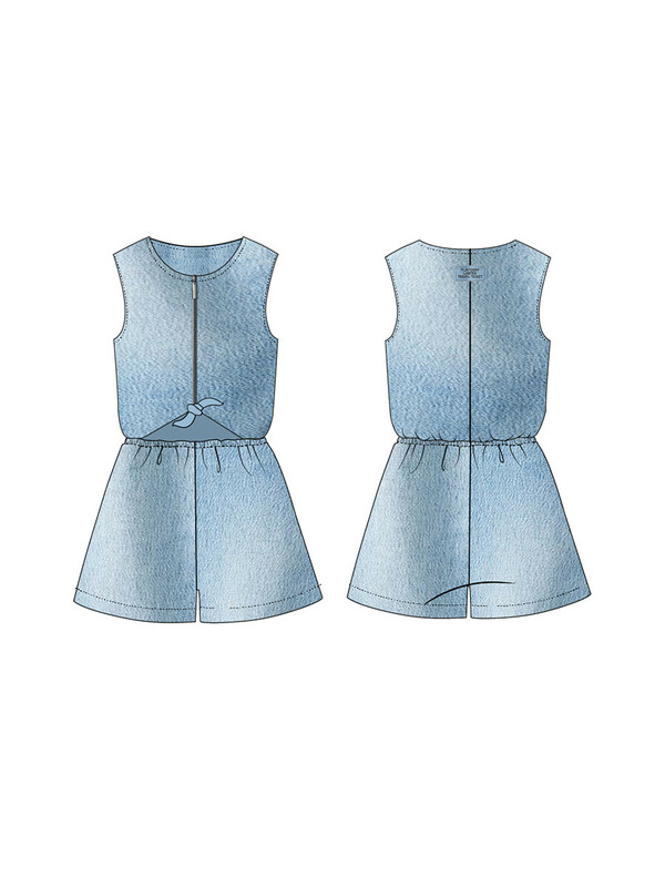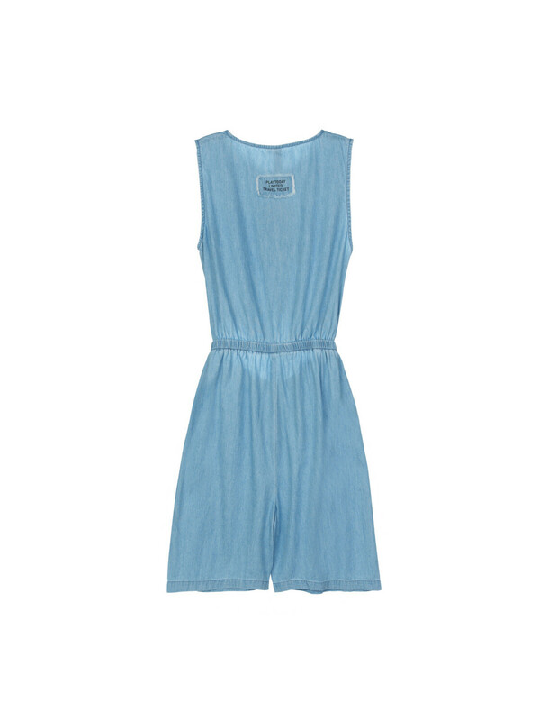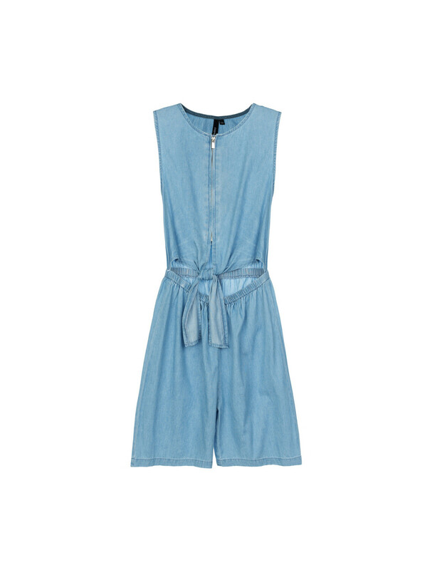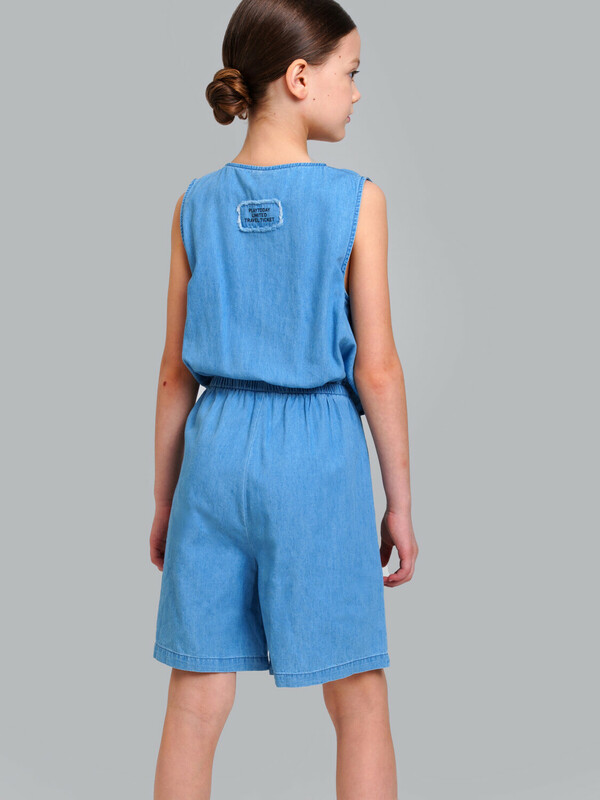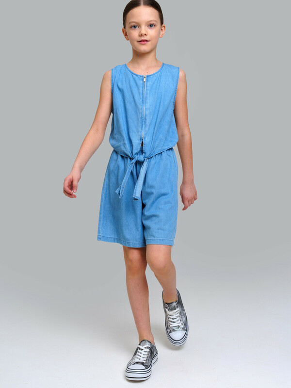 Джинсовый комбинезон для девочки подростка. Джинсовый комбинезон-ромпер из эластичного денима. Посадка comfort fit – свободный крой. Резинка по талии. Застежка на молнию и завязки. Модель выполнена из качественного и плотного текстиля.