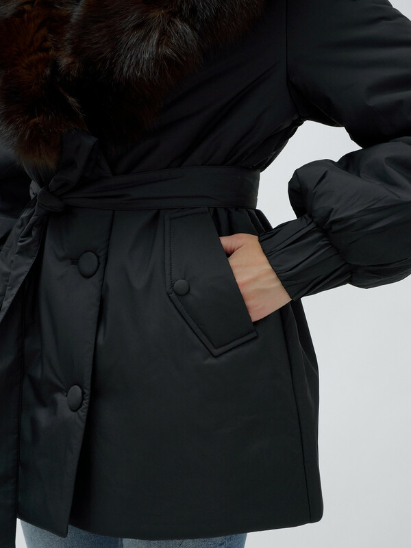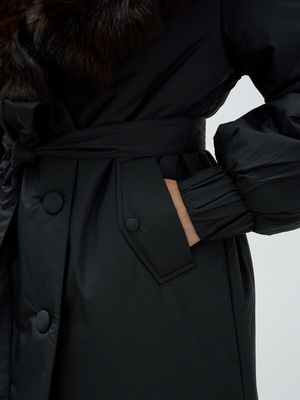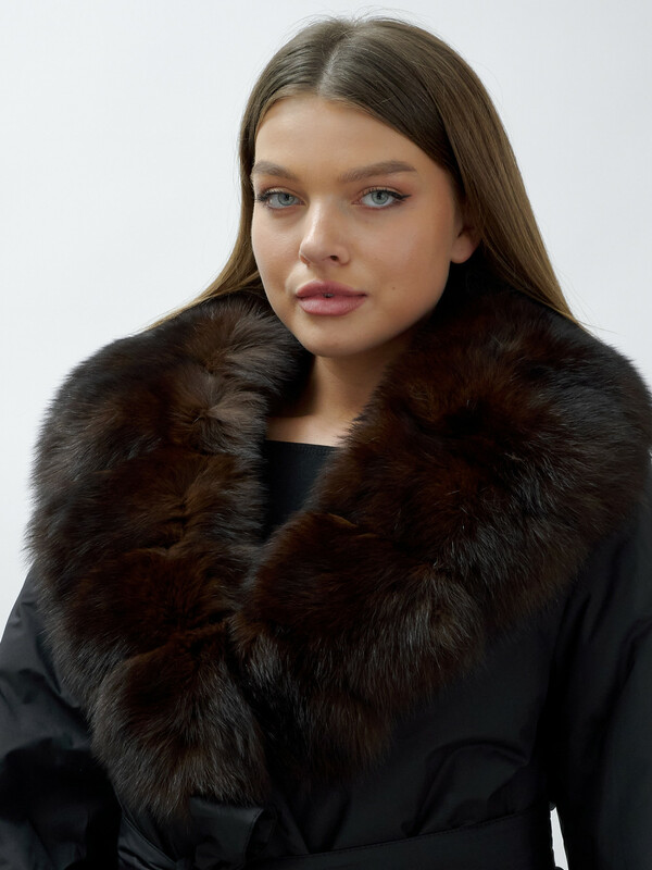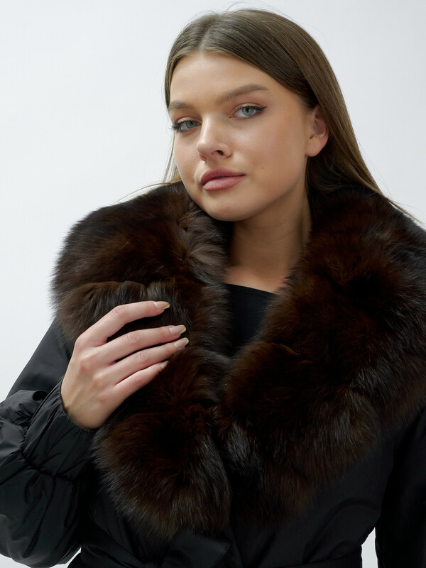- Натуральная опушка: Съемный пушистый воротник из меха песца, обработанного под соболя, добавляет роскоши и позволяет вам менять стиль в зависимости от настроения.