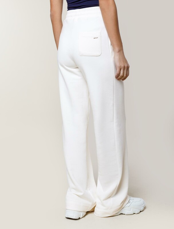 Брюки выполнены из премиального футера трехнитки без начеса. Модель дополнена эластичным поясом на резинке и хлопковым шнурком с золотистой фурнитурой. По бокам два кармана. Наличие эластана в составе гарантирует формоустойчивость и износостойкость изделия. Изделие сочетается в костюме с худи D49.054
