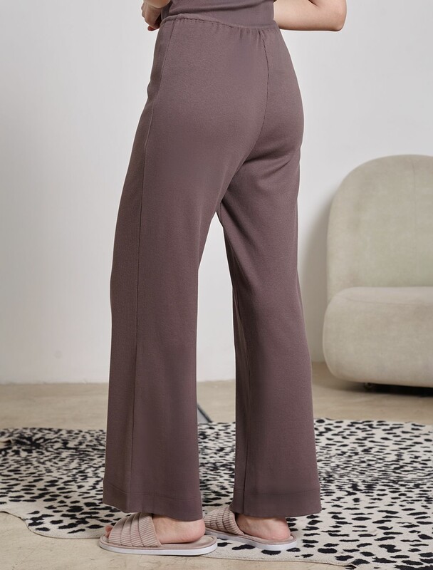 Главная страница - Каталог - Женская одежда оптом - Женское нижнее белье - Женские брюки, шорты для дома - Прямые брюки с поясом на резинке из фактурного трикотажа в рубчик