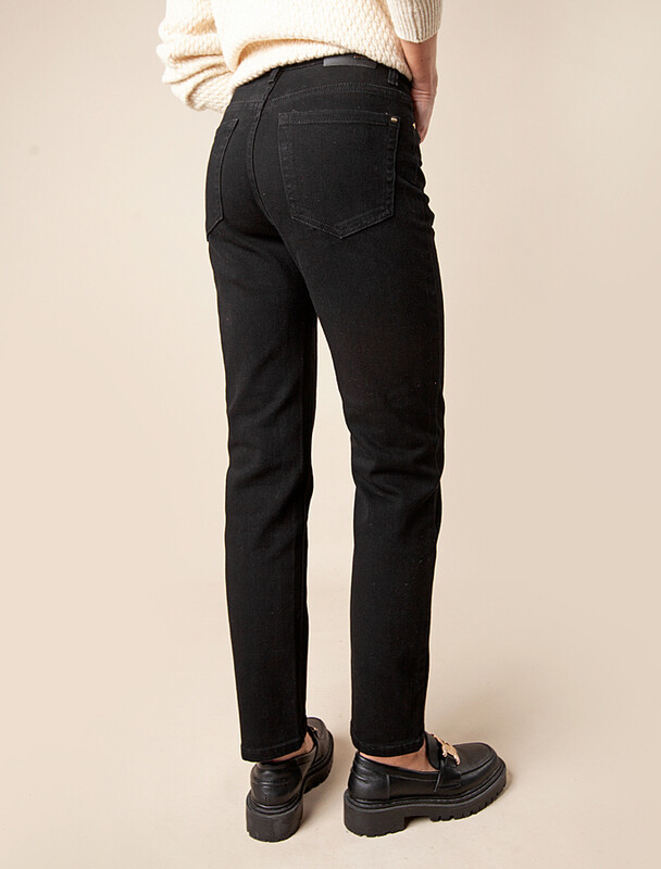 Джинсы прямого силуэта сшиты из эластичного денима средней плотности. Универсальные и практичные для любого времени года с кроссовкамии, туфлями и сапогами. На верх с классической блузкой, водолазкой и свитером крупной вязки.